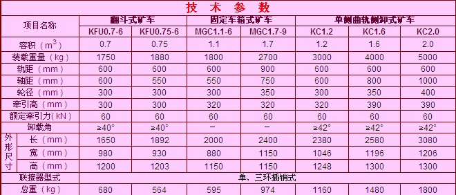 主要礦山運送各種礦石、煤炭和矸石等散狀物料。具有自動側卸、自動復位等特點,不但可以用于平巷,而且可以用在30°以下巷道,在水平軌道上可用機車牽引運輸列車,運送效率高。